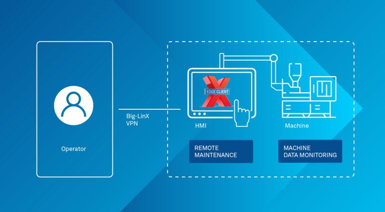 Your HMI (Windows) becomes the remote maintenance point with the Big-LinX Edge Client. Easy and secure remote operation and maintenance of your machines: via VPN. No additional hardware required. Get access to the Big-LinX Cloud for your HMI’s now: with the Big-LinX Edge Client.